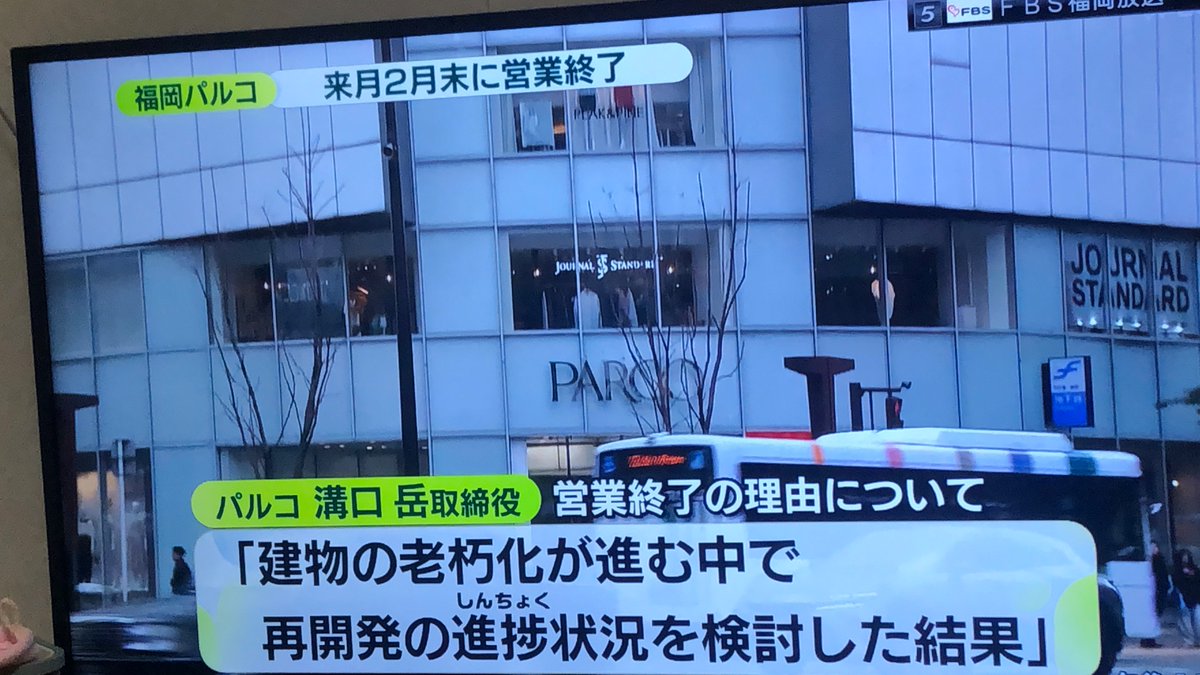 | 【福岡パルコ】2027年2月末で営業を終了「再開発計画に携わっていく」 …社が運営する福岡パルコの営業終了を決定しました。」 2027年2月末で営業を終了するのは、福岡市・天神の「福岡パルコ」です。 「福岡パルコ」は、岩田屋… (出典:FBS福岡放送) |